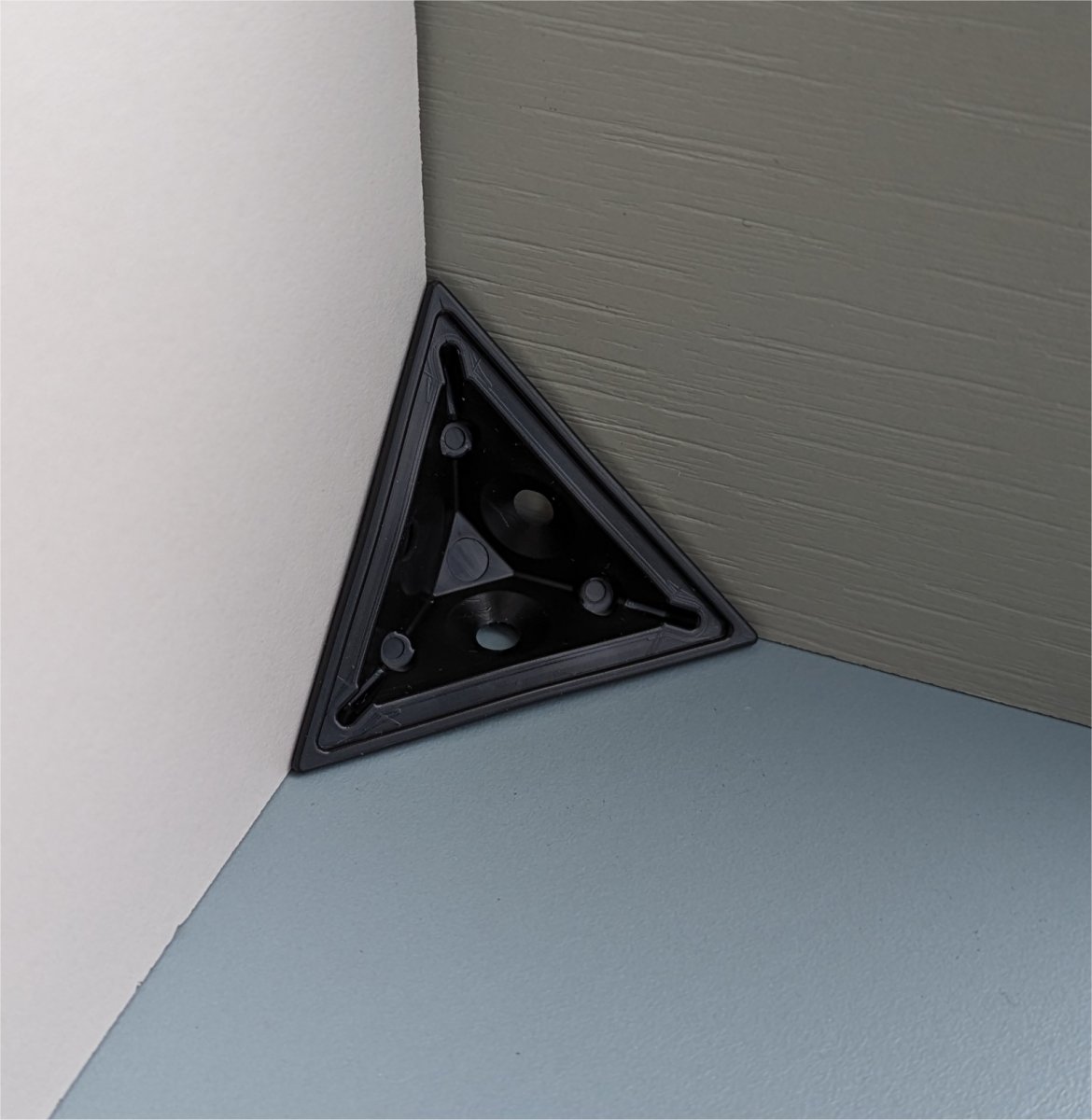 Tri Corner Block furniture fitting with Lid. A range of colours are available depending on quantities, please contact for details.